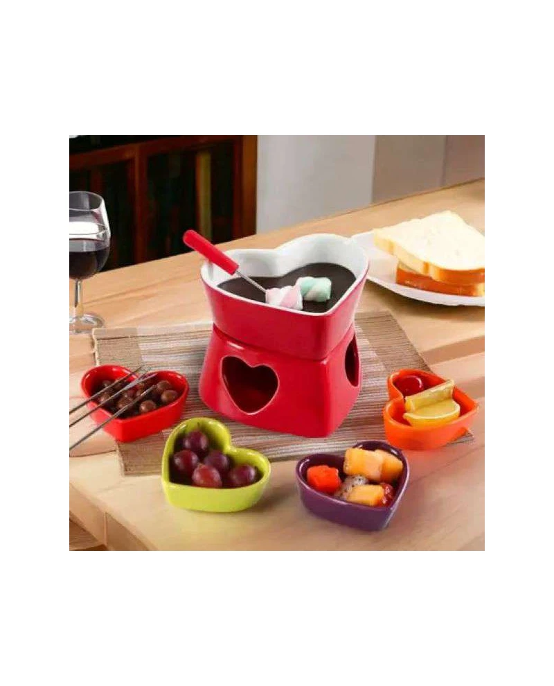APARELHO DE FONDUE 4 PECAS CORACAO VERMELHO