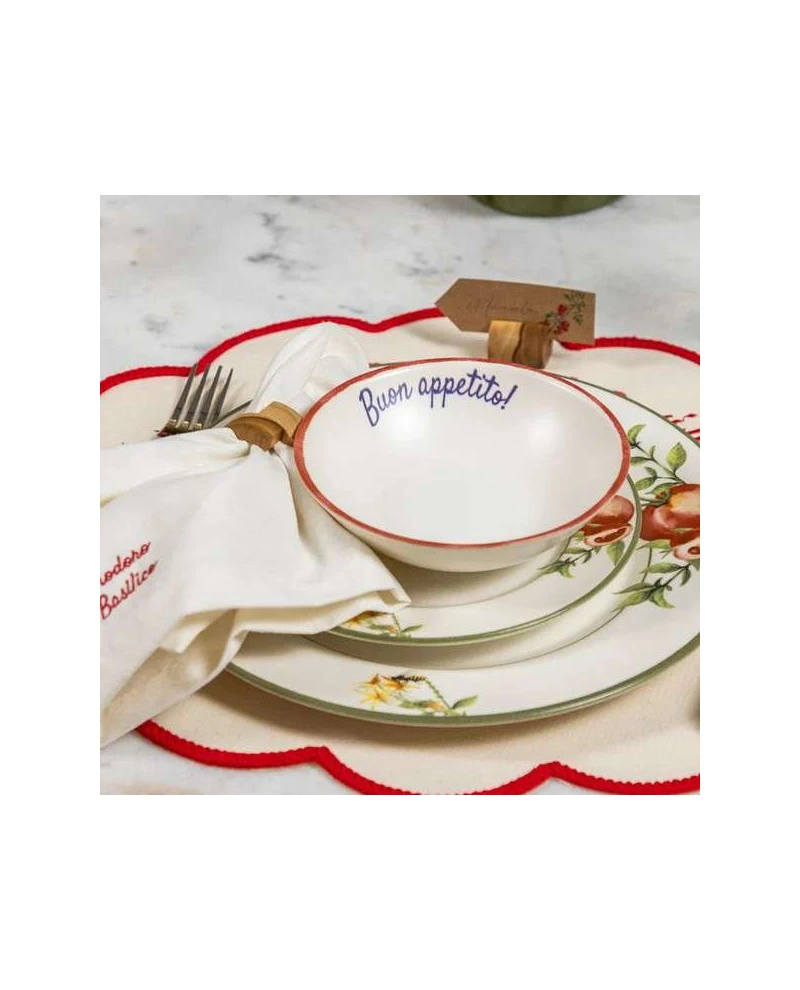 Charmoso e versátil, o bowl Aquarelle Buon Appetito Vermelho é perfeito para servir saladas, sopas, frutas ou pequenas porções com elegância. Produzido em cerâmica, traz o toque artesanal e descontraído da linha Buon Appetito, combinando perfeitamente com as demais peças da coleção. Uma escolha que une estilo e funcionalidade à mesa.