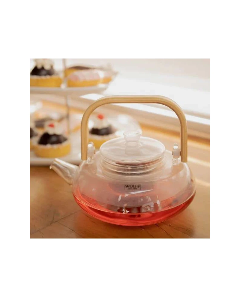 Chaleira De Vidro Borossilicato Resistente A Calor C/ Alça De Bambu