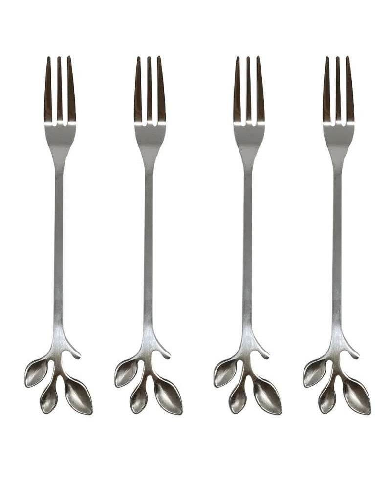Conjunto 4 Garfos Aço Inox para Aperitivo Leaves Prateado