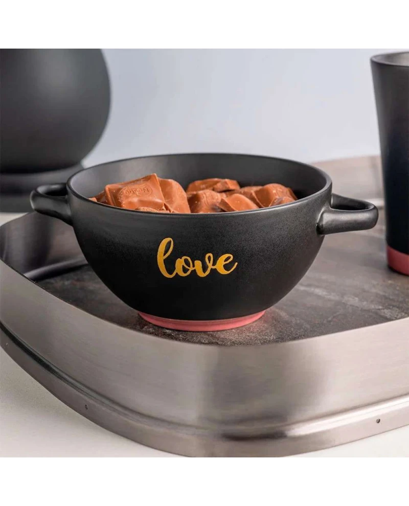 Com design moderno e cheio de significado, é a peça ideal para servir sopas, caldos e consommés com estilo. Produzido em cerâmica de alta qualidade, traz acabamento em preto fosco com a palavra love em dourado.