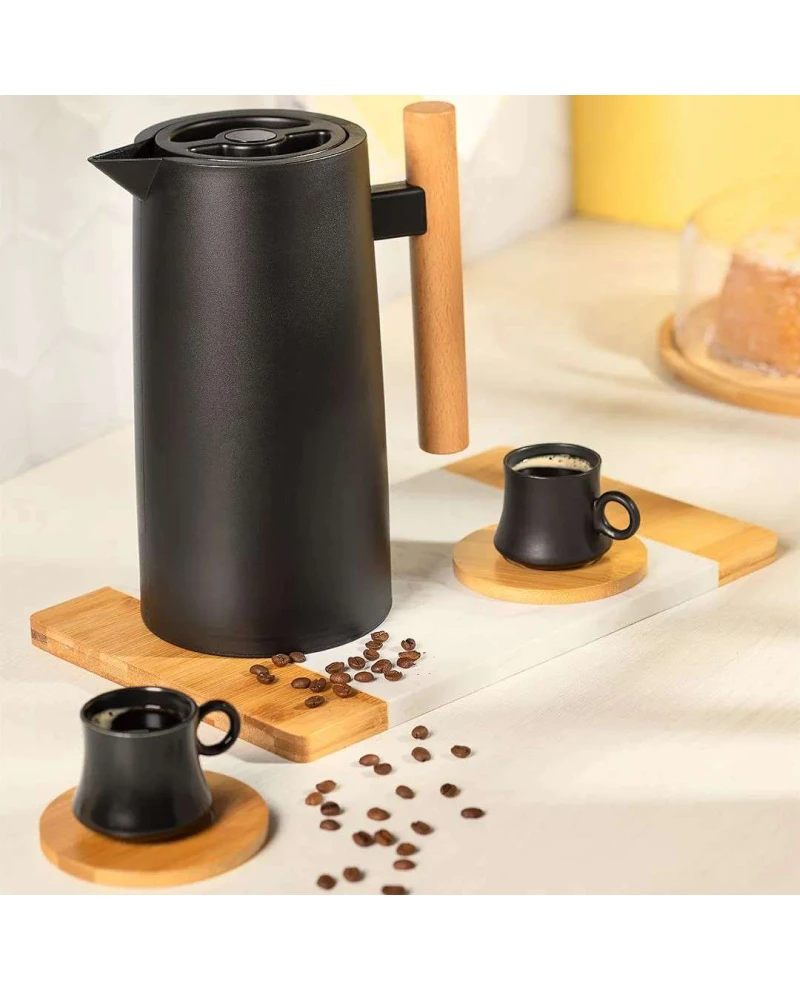 Sofisticação e funcionalidade em cada detalhe! Com acabamento preto e design elegante, esta garrafa térmica mantém a temperatura das bebidas com estilo e eficiência.