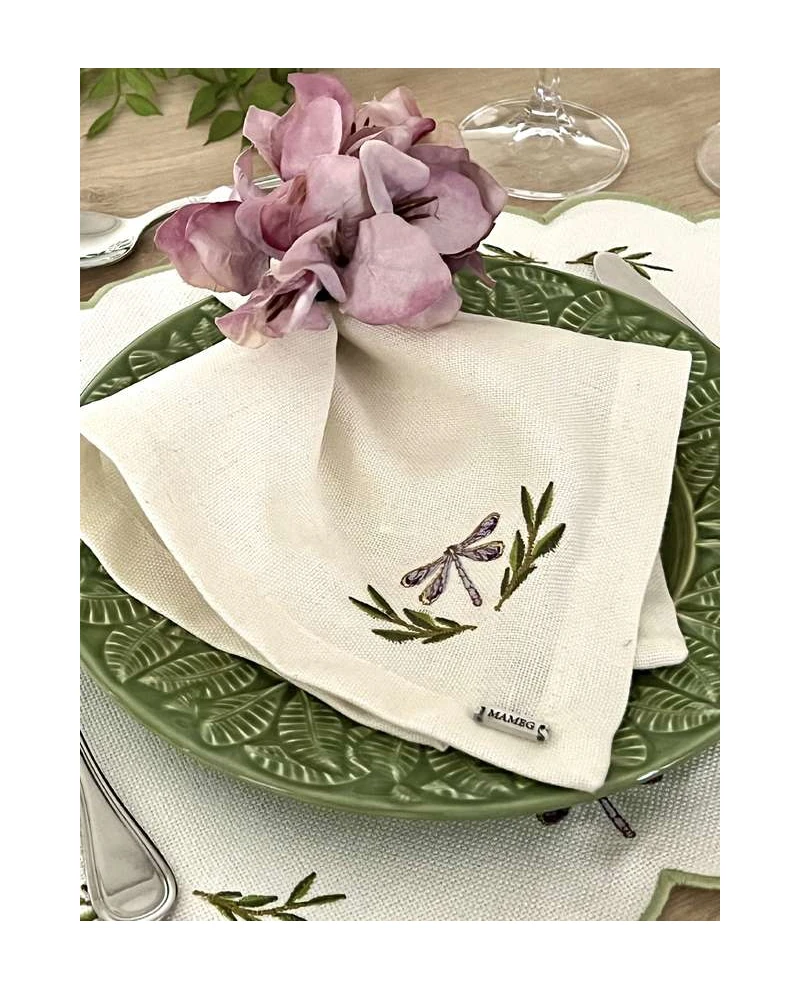 Guardanapo em tecido linhão, permite ótima absorção. Guardanapo com bordado de libélula.