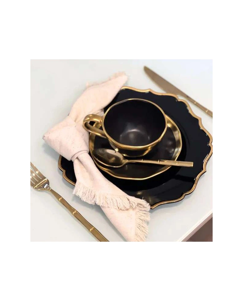 Guardanapo liso em tecido de linho com detalhes de franja por toda peça.