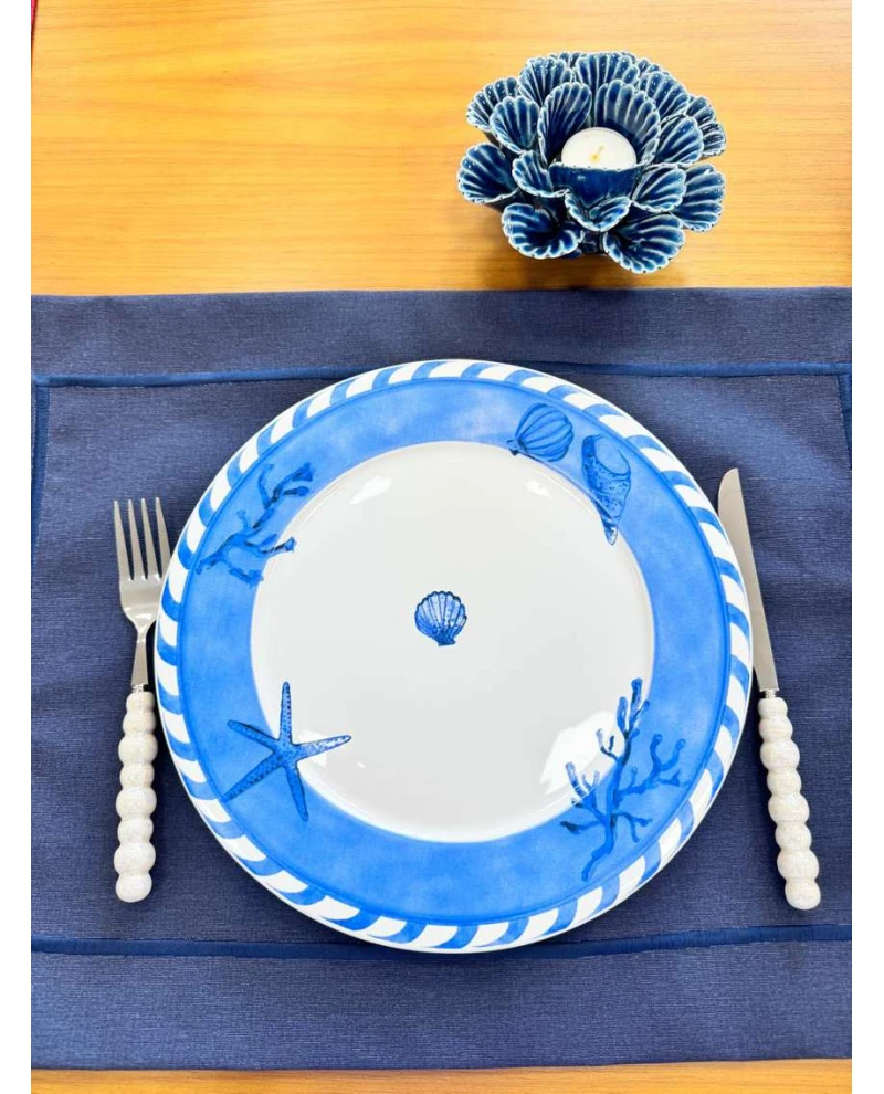 Com fundo branco e delicados detalhes em azul, seu design clean e elegante valoriza qualquer composição de mesa posta.
