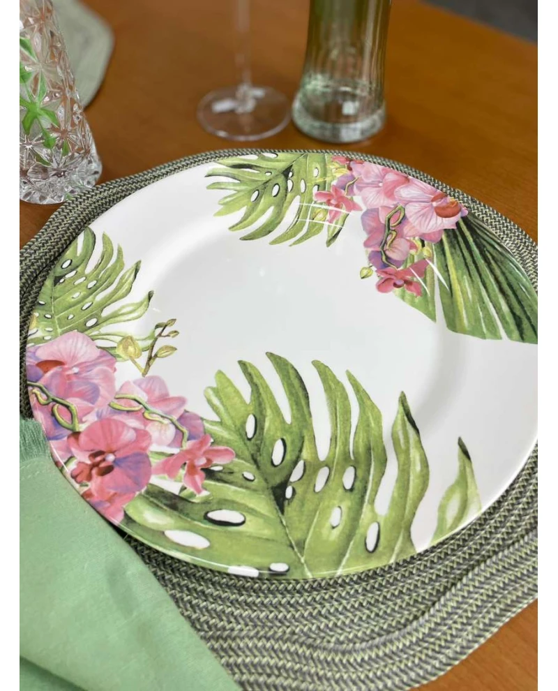 Com estampa tropical vibrante de flores e folhagens, o prato raso Bossa Nova traz elegância e frescor para a mesa posta. Produzido em cerâmica resistente, une qualidade e beleza, sendo ideal para refeições especiais ou para o dia a dia com um toque sofisticado.