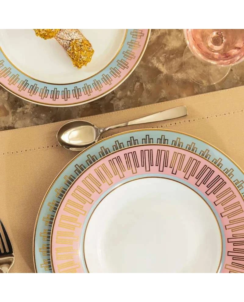Com design bicolor em branco, azul e rosa, decorado com detalhes dourados, esse prato de sobremesa traz o charme do estilo cosmopolita para o seu dia a dia. A linha Flamingo Cosmopolitan combina estética refinada e funcionalidade, proporcionando pratos de porcelana de alta qualidade, ideais para ocasiões especiais ou refeições cotidianas.