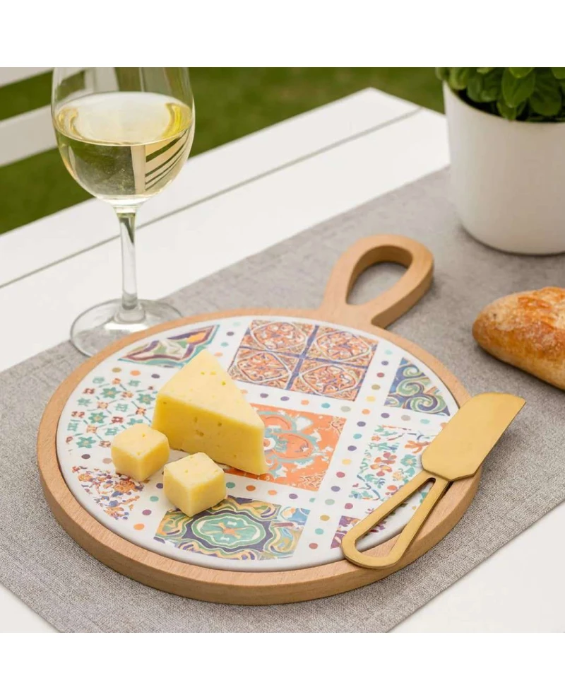 CJ 3 PARA QUEIJO COM BANDEJA DE BAMBU LADRILHO
