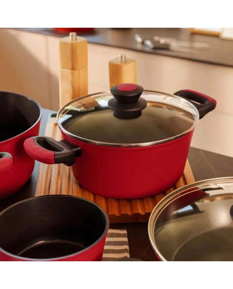 A caçarola possui revestimento cerâmico antiaderente de três camadas, feito com exclusiva tecnologia que permite o preparo de alimentos sem o uso de óleo e evita que os alimentos grudem na superfície de cozimento. O revestimento é atóxico, sem substâncias prejudiciais à saúde e ao meio-ambiente, comuns em panelas convencionais, garantindo que nada seja liberado durante o preparo dos alimentos
