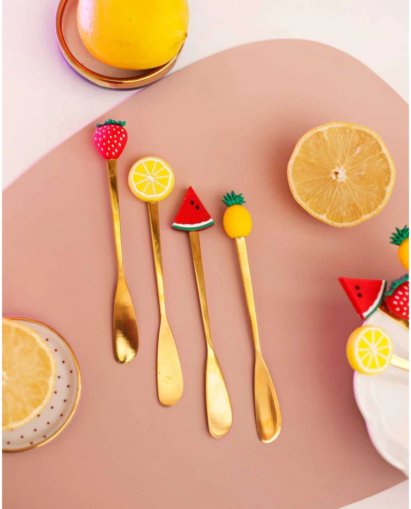 Conjunto 4 Espatulas Aço Inox Fruit Dourado