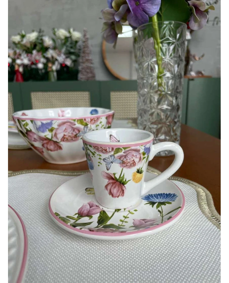 A Xícara de Café com Pires Easter Flowers traz delicadeza e charme para sua mesa posta. Produzida em cerâmica de alta qualidade, apresenta um design elegante com flores coloridas que combinam beleza e sofisticação. Ideal para servir café com estilo em ocasiões especiais ou no dia a dia.